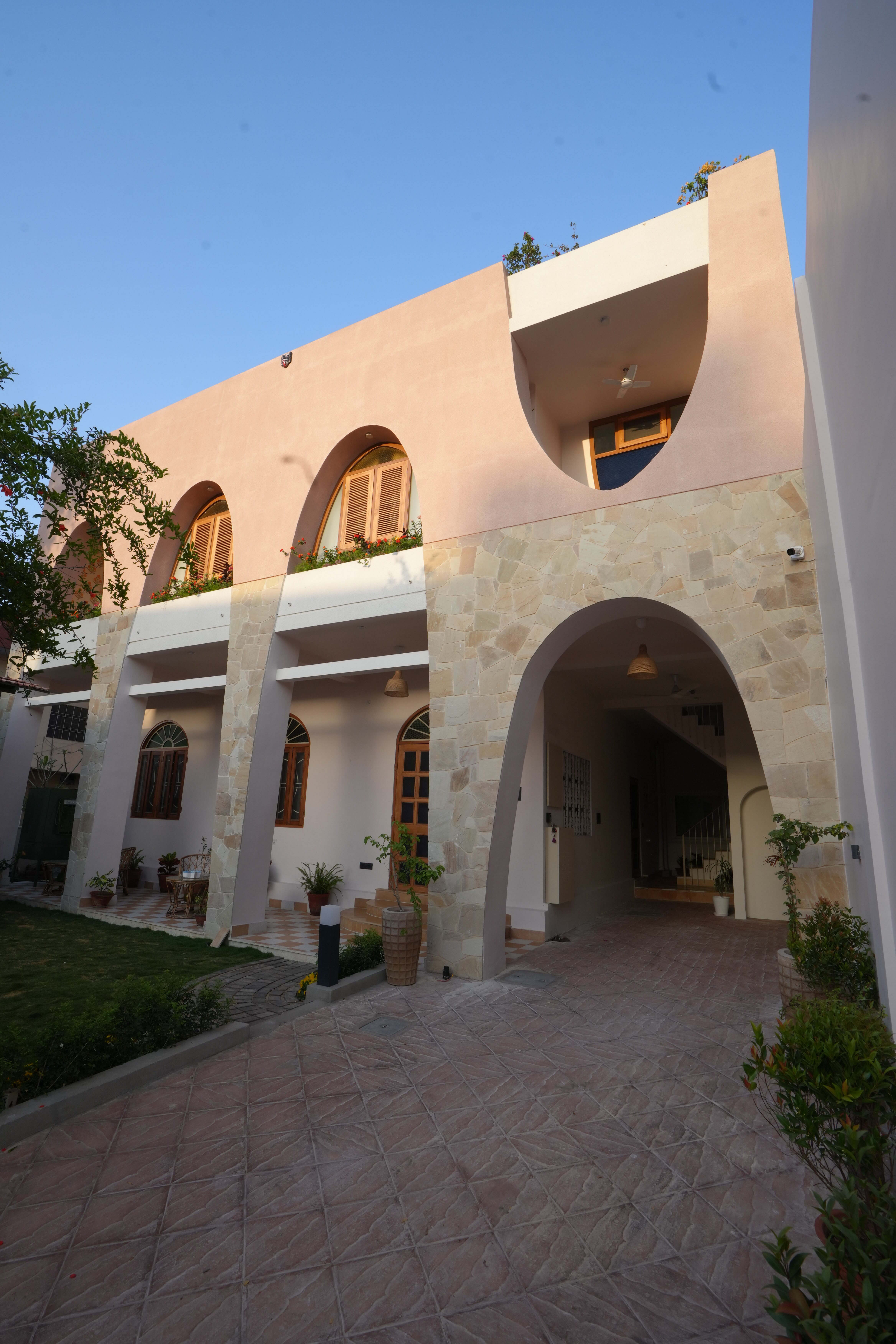 Days at Rajan House unfold unhurriedly. Morning light spills through the arches, afternoons invite a turn on the lawn swing or reading in a shaded balcony, and evenings often draw guests and hosts alike to the terrace or conversation pit.
