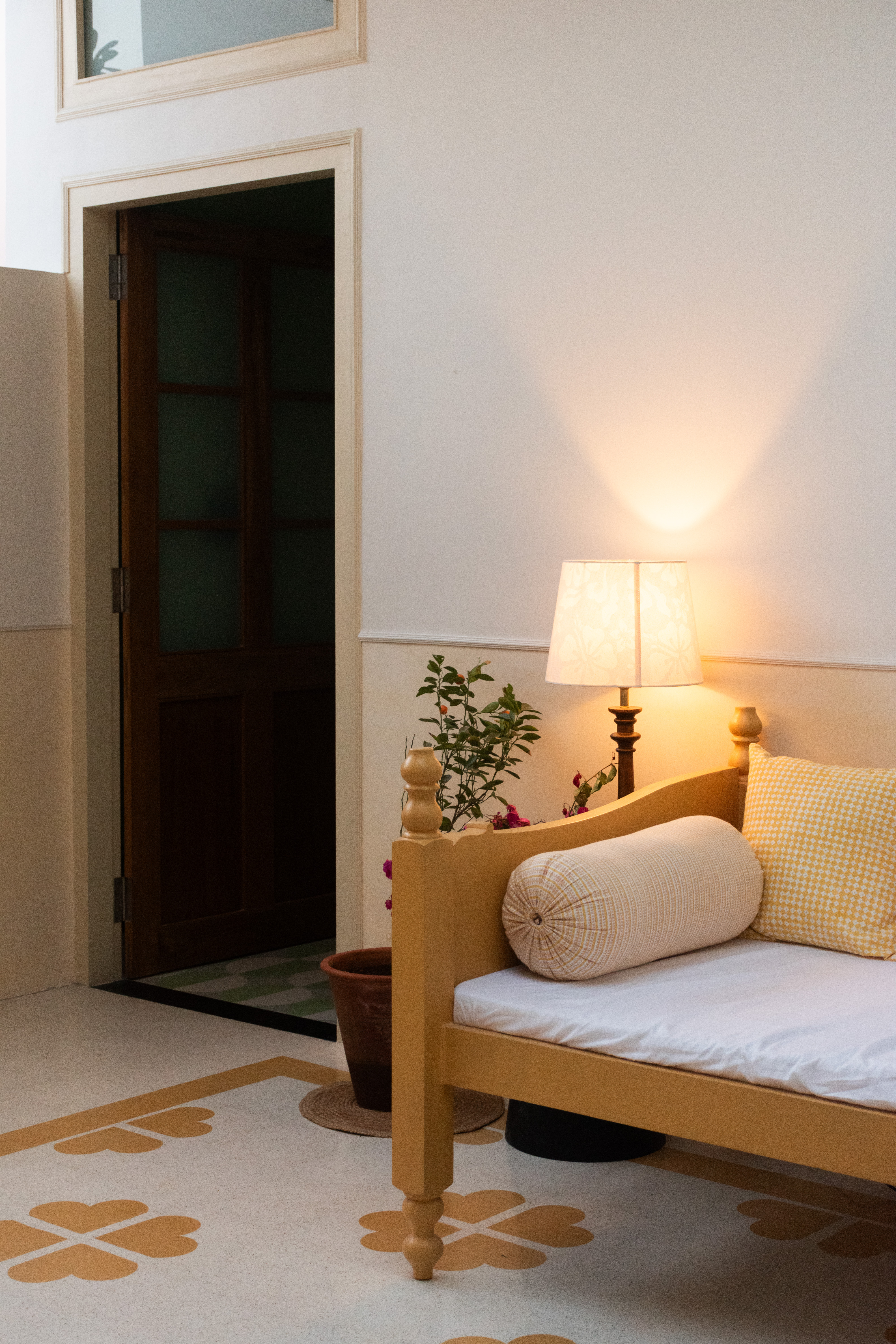 Although not in its title, the house embodies the unpretentious generosity of a grandparent’s home. Chai appears before bags are unpacked, conversations flow between kitchen and terrace, and guests are encouraged to settle in as if the place were their own. Terrazzo floors, patterned tiles, and instinctively chosen furnishings replace the over-styled “themed” rooms of typical boutique hotels.